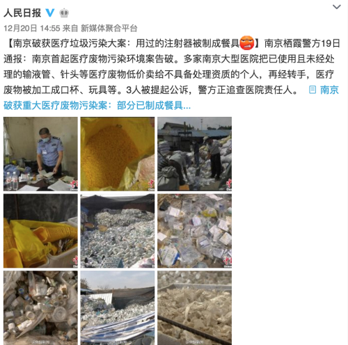 這些醫(yī)療垃圾流出的危害,不僅在于被再加工成生活用品和玩具,直接威脅到人體健康,還在于加工過程中,污染了水體、土壤、大氣,不僅會造成疾病的傳播,還會對生態(tài)環(huán)境造成嚴(yán)重污染和破壞。希望借這起案件的曝光,能夠讓我們發(fā)現(xiàn)和及時(shí)彌補(bǔ)漏洞,讓監(jiān)督管理更加有力,給我們一個(gè)更安全的生活空間。