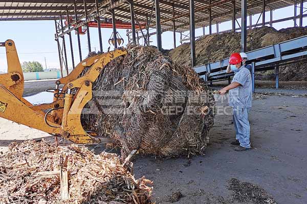使用的設備型號為潔普雙軸剪切式破碎機GD12,每小時產量為:30-40噸,物料破碎后尺寸:50-100mm。主要破碎物料:生物質、秸稈類、甘蔗葉捆、甘蔗廢料、稻草類等。